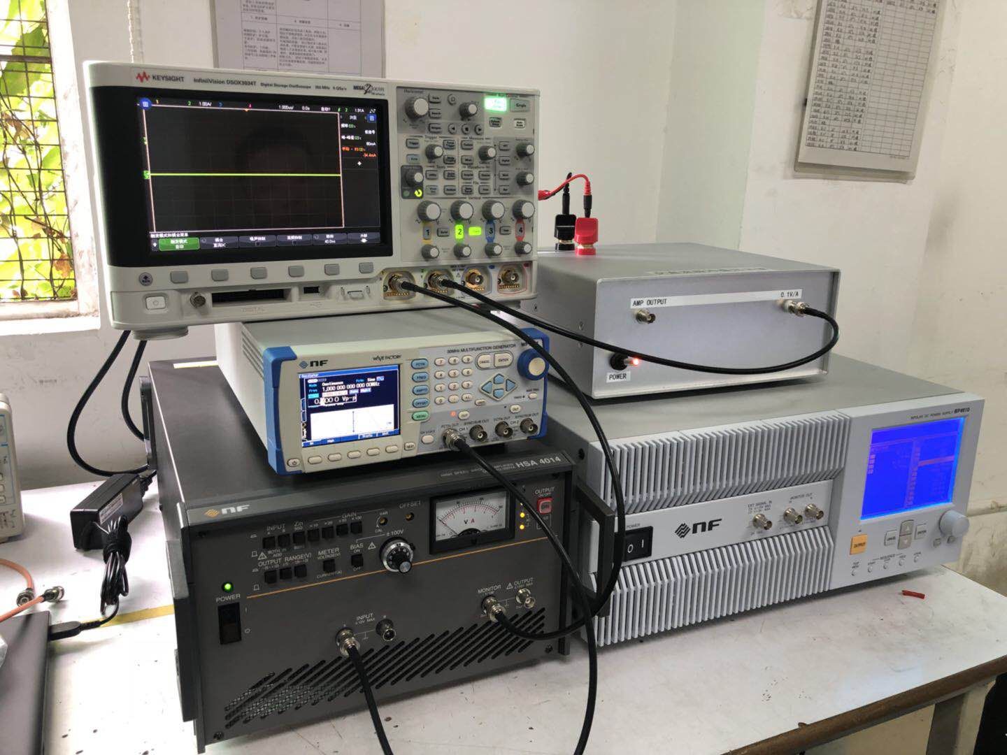 主要用于手机触摸屏触点抗干扰能力试验测试。通过计算机控制软件,控制信号发生器产生任意波信号,驱动功率放大器输出功率电流,用于模拟电网电源环境,通过计算机模拟控制软件,评估手机触摸模组抗干扰能力,试验手机在充电状态下手触动手机屏时屏幕是否会出现有跳点,在手机触摸屏画一条线时屏幕是否会出现断线不连续性,在手机触摸屏画圈时屏幕是否现不连续性等相关模拟试验。