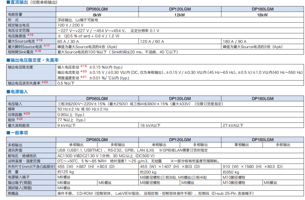 多项型号DP 060 LGM / DP 120 LGM / DP 180 LGM 以小型一体化机壳对应单相/单相三线/三相测试,无需导入个别系统有效利用作业空间,并降低设备费用。