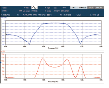 可显示用于滤波器等电子电路波形再现性评价的群延时(GD:Group Delay.用角频率对输入输出间的相位进行微分)。