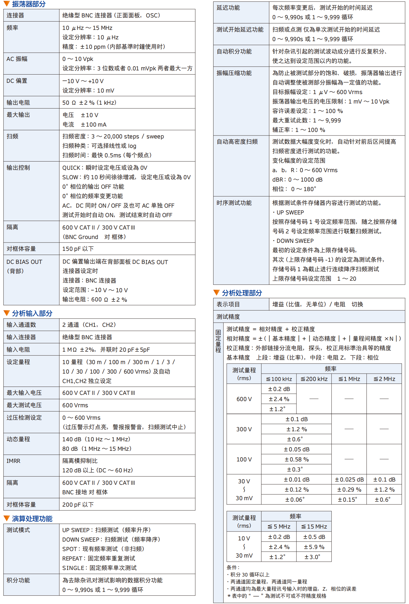 动态量程: 140 dB 通过高分辨率A/D转换器和对每个测试频率点分别进行量程优化的自动切换量程功能,确保较大的动态量程。对于测试过程中发生的变化,