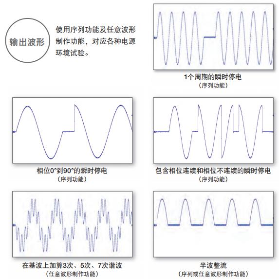 编程重复试验,多种条件的组合及长时间试验等试验模式并输出。使用附带的控制软件,复杂的输出式样也轻松编辑,可高效进行不同地域电源试验及规格试验的预备试验。