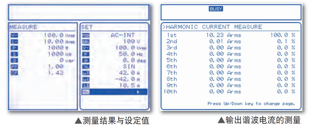 本产品具有高精度的测量功能,不仅能精确测量电压和电流和功率,还可以测量同步频率、负载的功率因数和谐波电流。在大型显示屏上,同时显示设定值和测量值,具有良好的视觉效果。