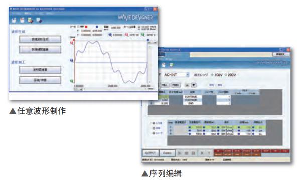 标准配备可进行基本参数操作,测量值的数字记录,任意波形的编辑/传送,序列编辑/控制的计算机用软件,支持研发时的测量数据解析,生产线上的各种试验的自动化等。