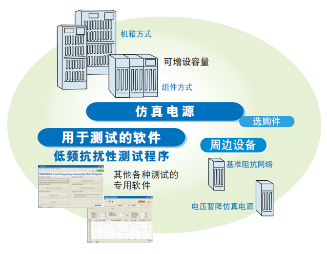 v备有能进行IEC/JIS标准的低频抗扰性测试的软件(ES0406D)