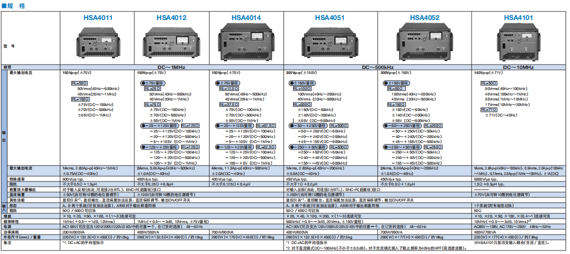 机型 | HSA4051 | HSA4052 | HSA4101 |